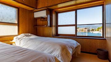 Through the large windows, you can take in not only the expansive sea but also the harbor and the island’s townscape, allowing you to fully experience the slow, peaceful rhythm of island life.