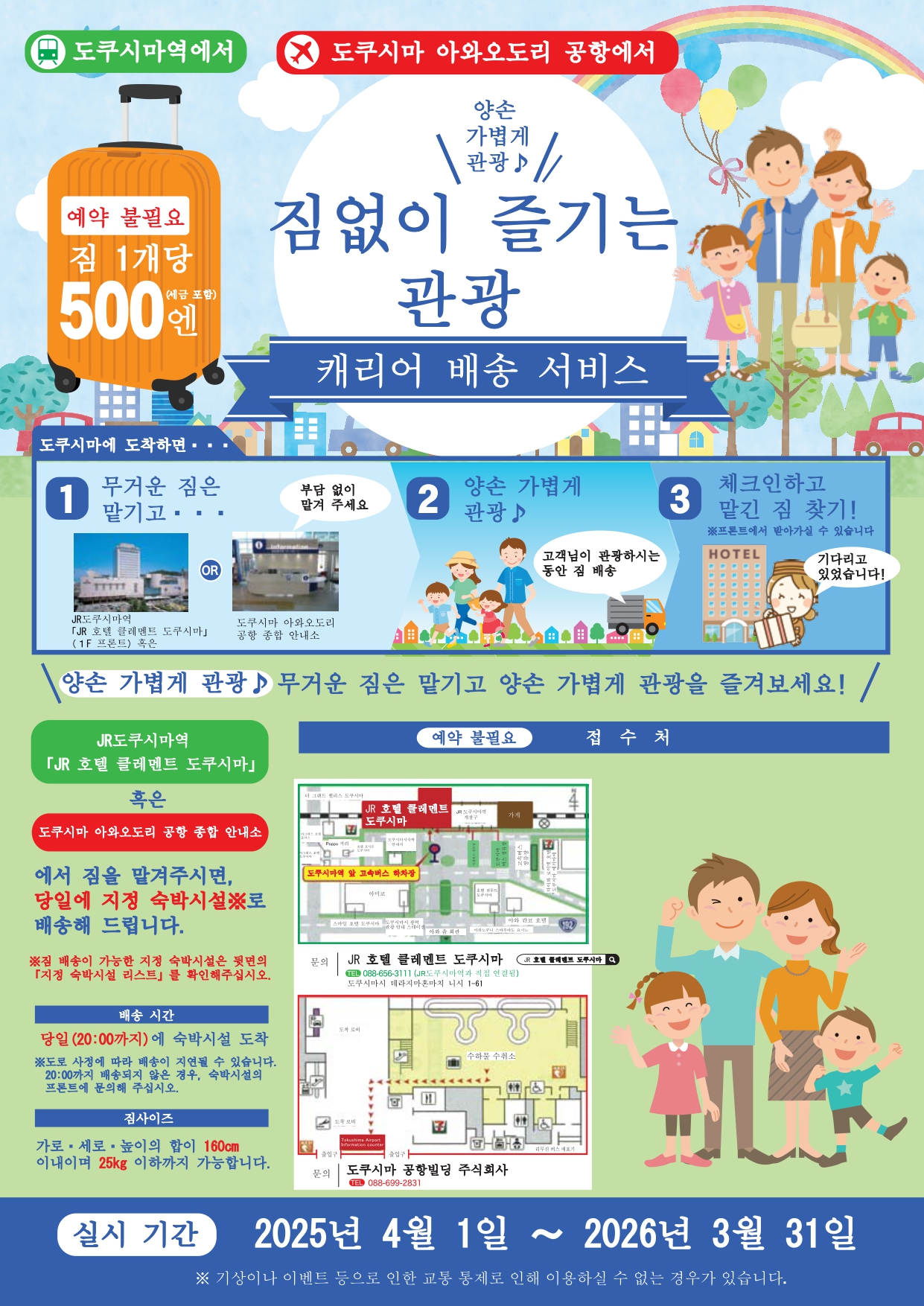 JR 도쿠시마 에키마에(JR 호텔 클레멘트 도쿠시마), 도쿠시마 아와 오도리 공항에서 지정 숙박 시설까지 당일 중 수하물을 제공하는 "빈손 관광"서비스를 꼭 이용해 주세요♪
