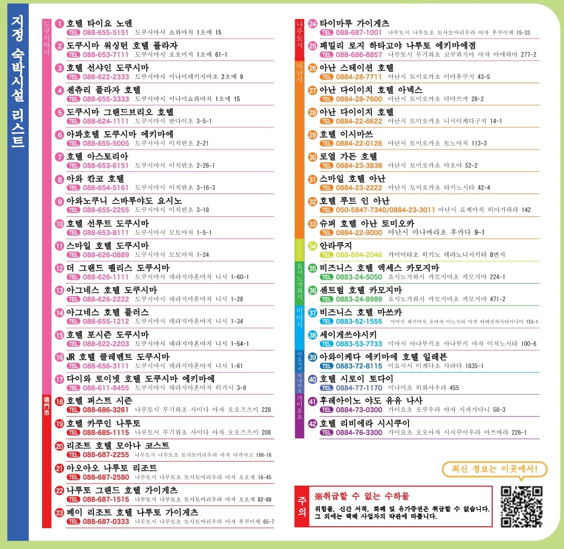 지정 숙박시설 리스트