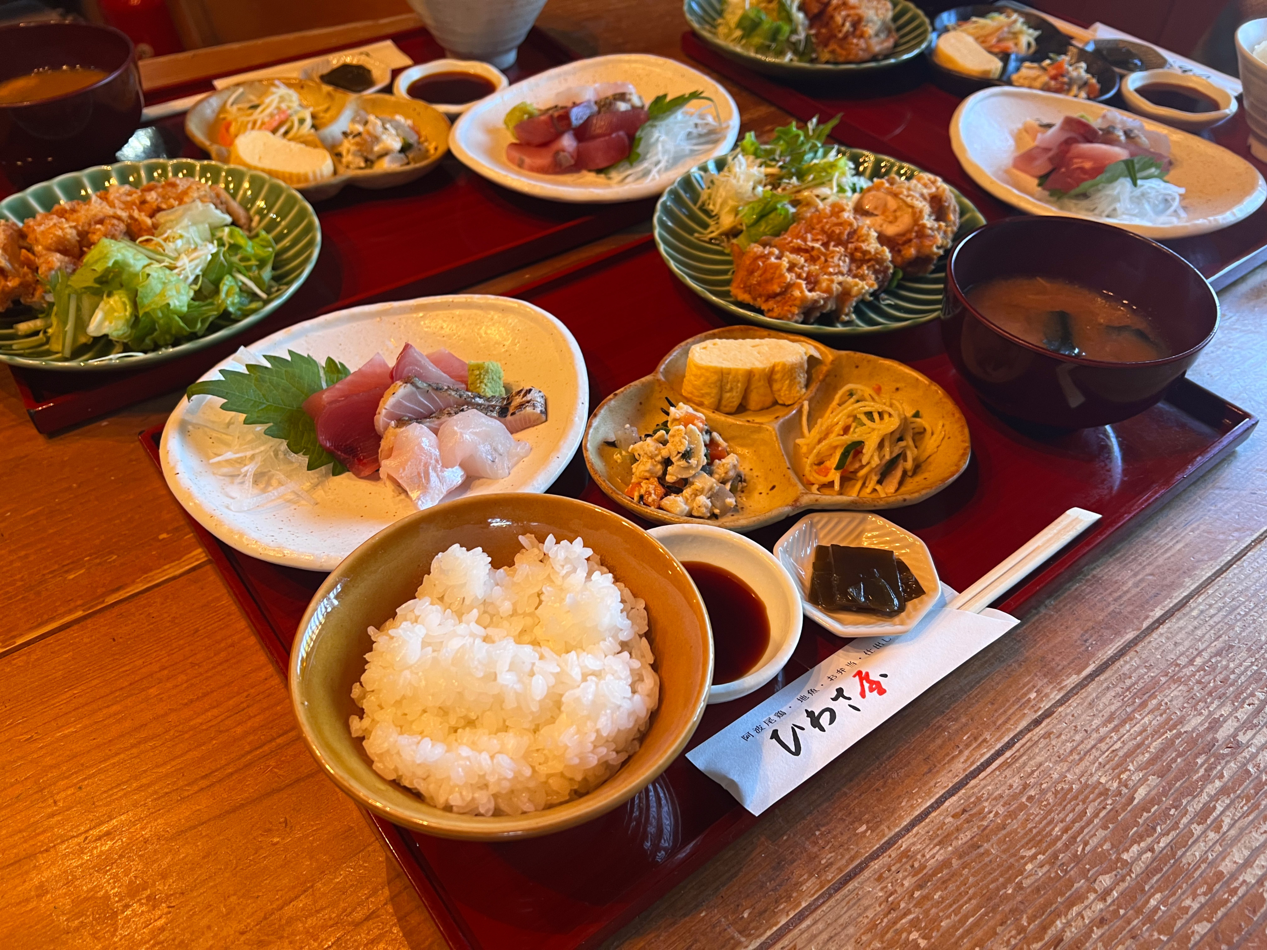 「日和佐屋」是當地人氣的定食餐廳,活用古民家建築的用餐空間,提供以德島縣在地食材包括海鮮、地雞等。