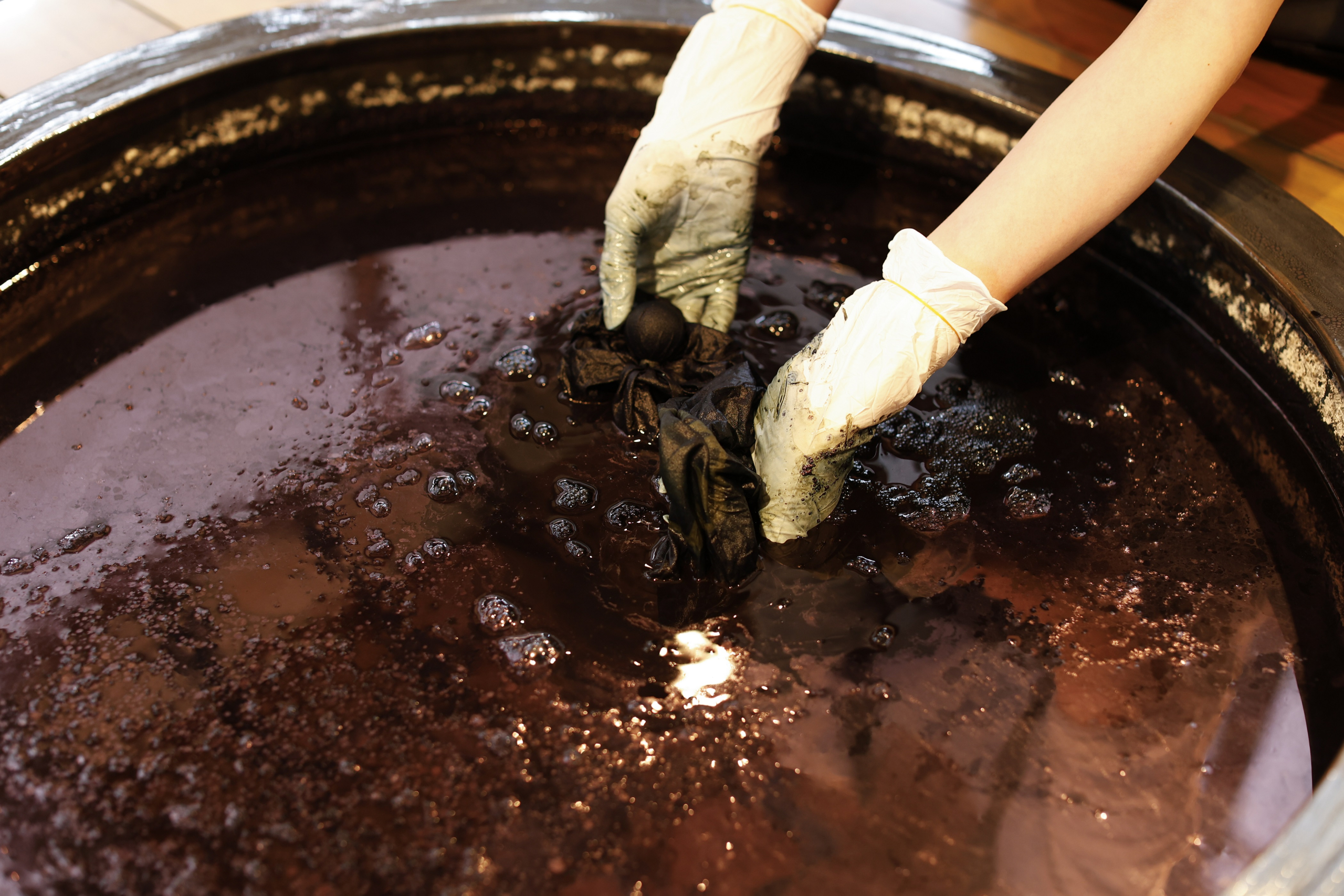 另一個德島堅守的傳統文化就是天然藍染,在德島生產的藍染染料稱為「阿波藍」,阿波藍的藍染衣物,不僅呈現出優美深邃的藍色,還耐穿、不易褪色,具備天然的抗菌、防臭特性,實用性極高,因而大受歡迎。其使用的天然染料原料「發酵蓼藍(すくも)」製作過程繁複,從栽培、乾燥、堆積發酵及熟成等,耗時數個月,仰賴職人的經驗與對氣候、溫度、濕度的精準掌握,因此真正高品質的阿波藍十分珍貴。