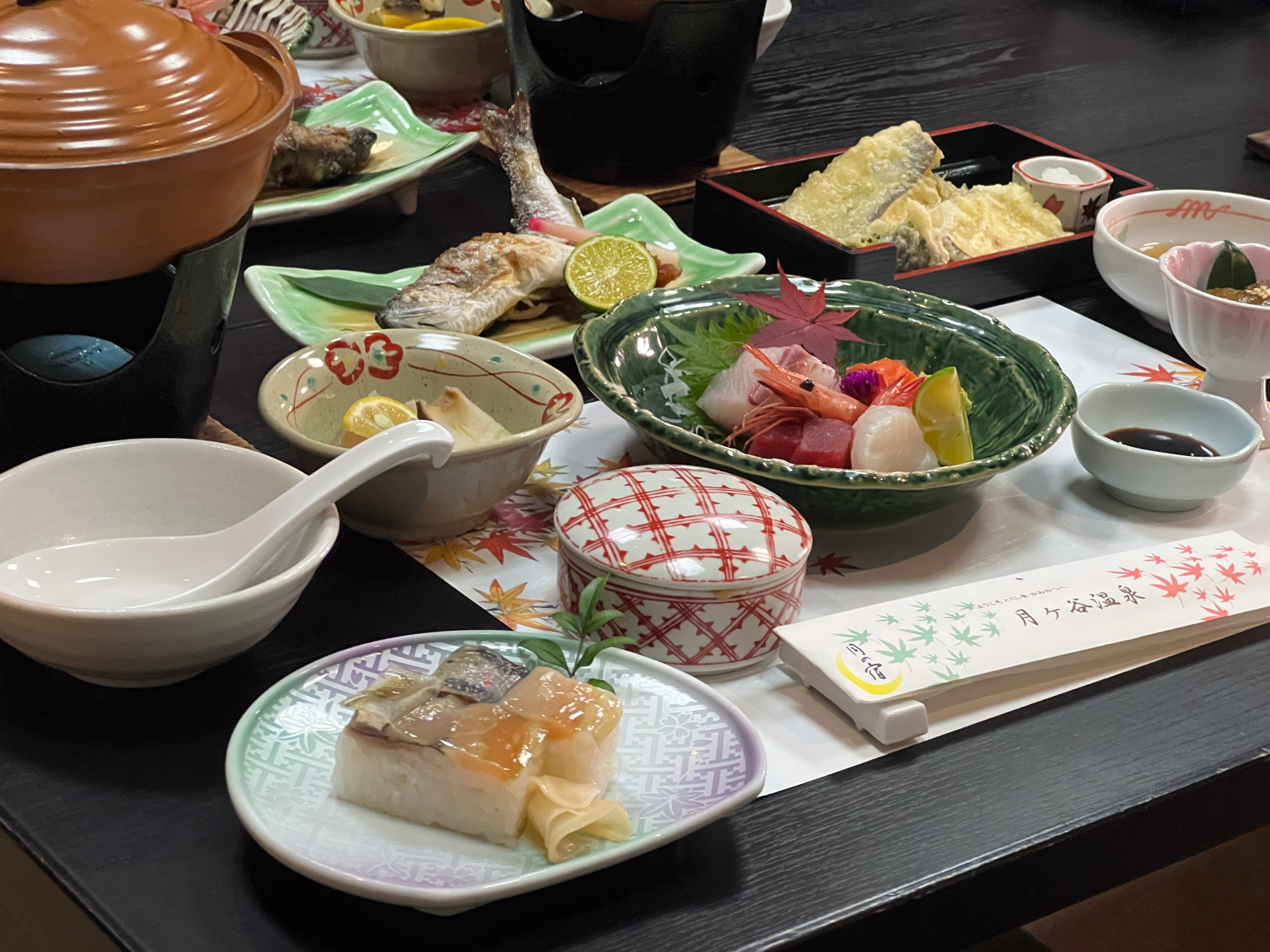 上勝町的「月谷溫泉 月之宿」是一間坐落於群山環繞、環境靜謐的溫泉旅館。從整潔舒適的客房可眺望勝浦川的優美景色。不僅能在溫泉中悠然放鬆,旅館也以大量使用在地食材的料理為特色,餐點種類豐富,份量與內容都令人十分滿足。